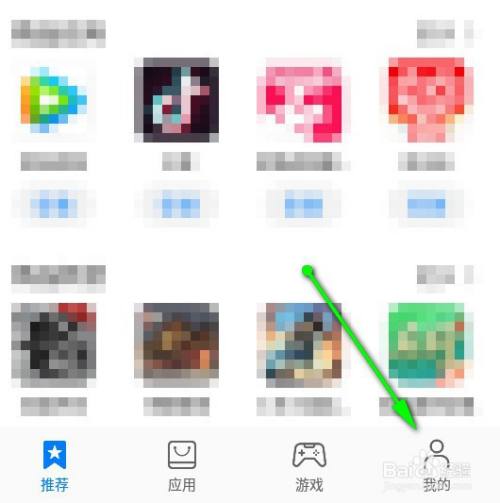 首先启动华为应用市场app进入主界面,点击右下角 我的 小图标按钮。如图箭头所示