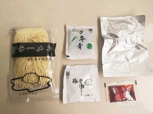 打开包装,里面主要食材是:日式半干鸡蛋面、蔬菜干、豚骨汤、熟牛肉、辣椒油。