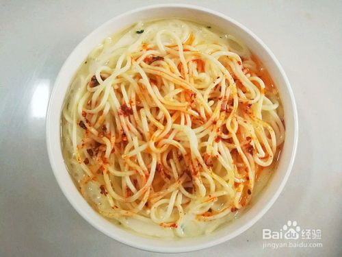 煮好的面条捞起放入碗中,然后加入适量的辣椒油,不喜欢吃辣的就不加,豚骨汤具有咸味和鲜味,所以不用加入食盐和鸡精了。