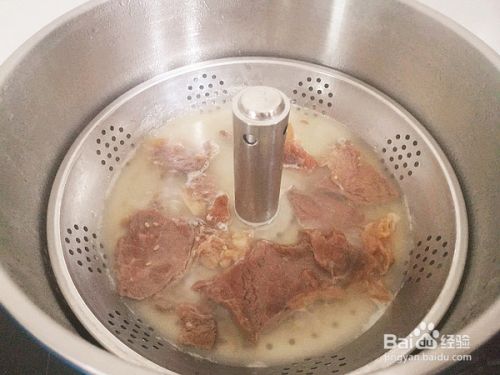 将熟牛肉片放入锅中,加入适量水加热煮几分钟。