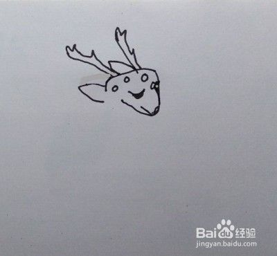 画梅花鹿的耳朵、眼睛、鼻子、嘴巴和头顶的花纹。