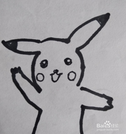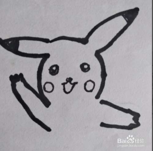 先画出皮卡丘尖尖的耳朵,如下图所示。