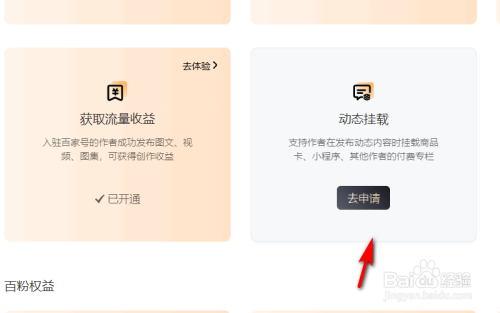 百家号里面可以发布动态,在动态下面也可以挂商品,但是要先开通动态挂载,下面就分享一下百家号怎么开通动态挂载。