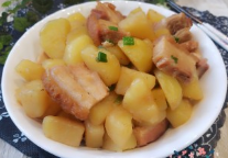 放蚝油和酱油炒匀。(烧肉带咸味,调味料少放。)