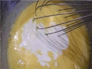 奶油奶酪软化,加入炼乳和牛奶,搅拌均匀,加入蛋黄、白糖和玉米油,搅拌均匀,倒入低筋面粉和蛋白糊,搅拌均匀,放入烤箱中烘烤。