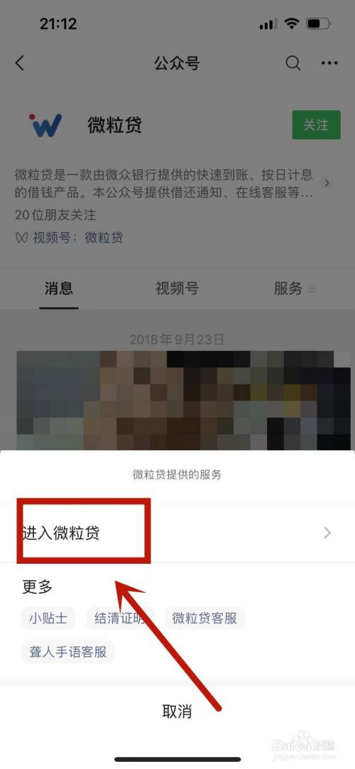 开通微信微粒贷,是需要找到“微粒贷”公众号并查看额度就行,以下为详细的步骤说明: