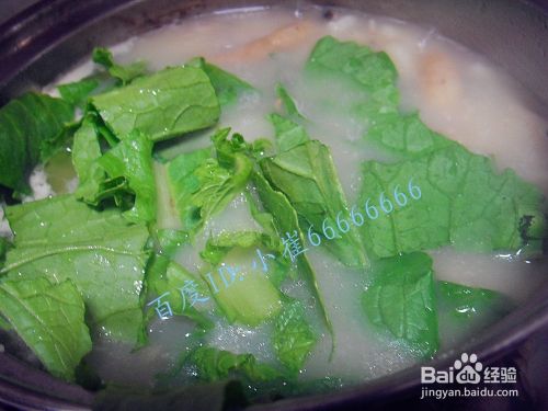 等到水再开起来的时候,加入准备好的小白菜和蒜末。