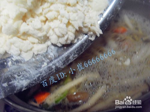 海鲜菇和胡萝卜八分熟的时候,加入准备好的面疙瘩。