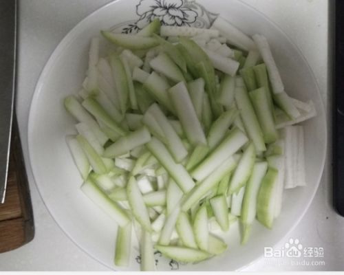 将瓠瓜洗净,去皮、切成条,装盘备用