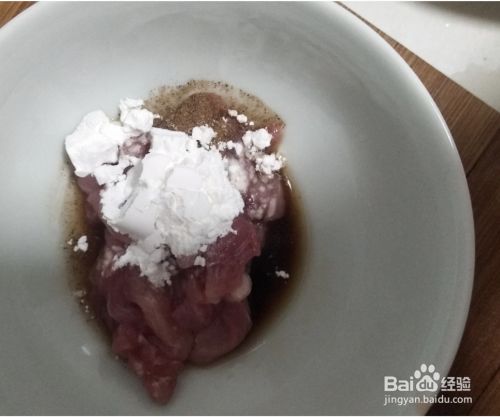 将牛肉切小片之后,装入碗里放淀粉、酱油、料酒、五香粉搅拌均匀腌制5分钟左右