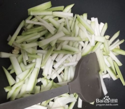 倒入瓠瓜片,翻炒煸炒至断生至变软,放少许盐翻炒半分钟