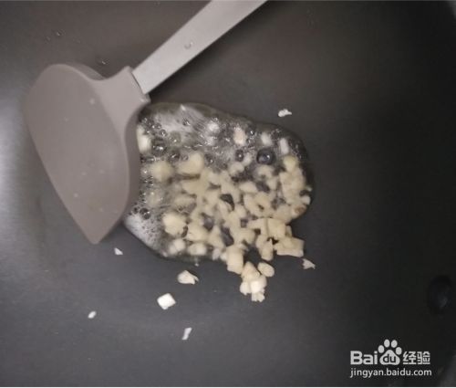 锅中放油,烧至六成热、放入切好的蒜沫爆香