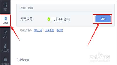 找到”互联网“并点击,然后再右边找到宽带拨号”设置“,