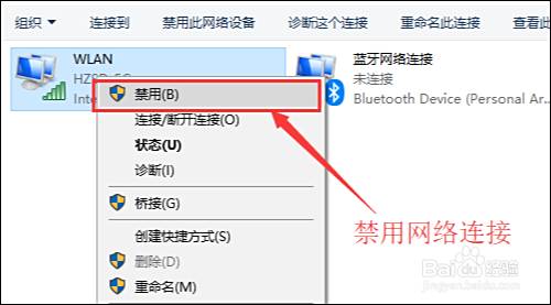 右键单击选择“禁用”,然后会看到WLAN会变成灰色,