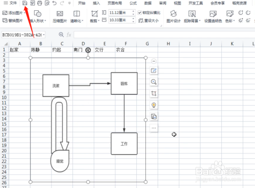 双击图形中空白处,添加文字内容,流程图编辑完成后,点击【插入】。