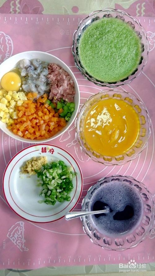 今天带来的是彩色饺子,注意调料根据自己口味适量增减。