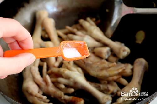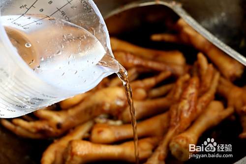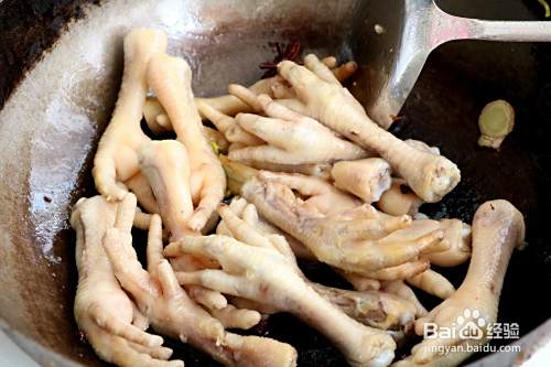 翻炒均匀后,倒入刚刚没过鸡爪的清水;大火烧开,转中火煮至熟烂即可;
