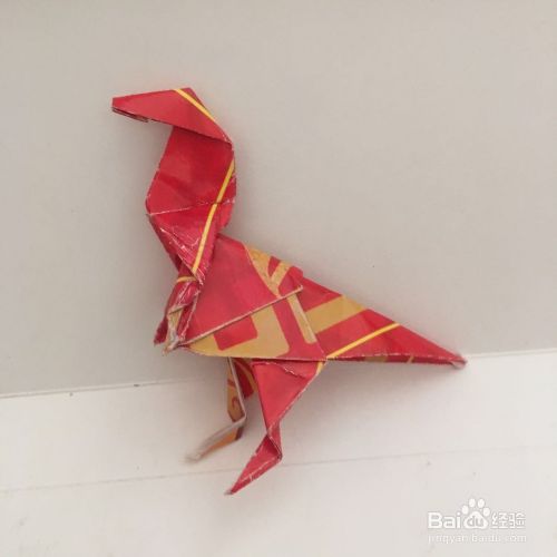 第六步 折叠完之后 再折出霸王龙的头部 小前爪 然后再折出它的腿部(先向后折 再向前折)就行了