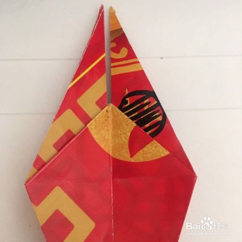 第三步 折倒完之后 拿起下面的角向上对折 然后再把怎样两个角向上折叠至中线