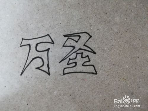 第一步先用碳素笔写出“万”字的艺术字体,注意一些笔顺的末端写的要尖一些。