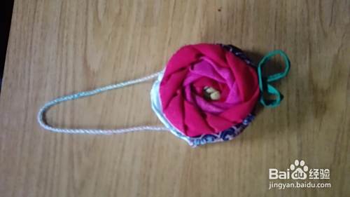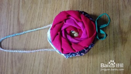 最后,安装上小挎绳,玫瑰花小挎包就做好了。