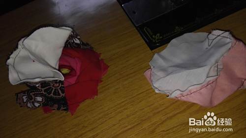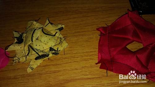 制作的时候要将正方形的对角车和,中间加入彭胶棉,增加玫瑰花的立体感。