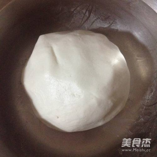2用开水将白糖融化,倒入面粉蛋混合物里,搅拌均匀后和成面团,静置15分钟。