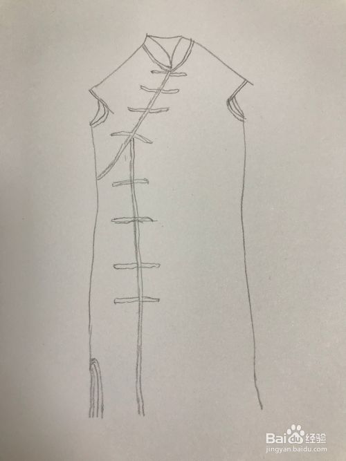 修饰旗袍下摆和中式盘扣,一个简易女旗袍初步画好了