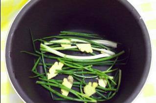 再放入2条鲫鱼,在鲫鱼上再铺上一层葱段,姜片。