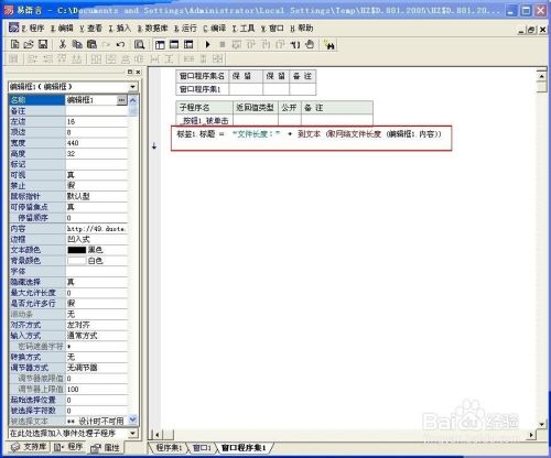 再双击窗口1的按钮1进入窗口程序集1,输入如下内容