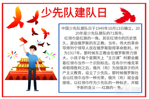 下面我来分享一下“少先队建队日 ”的画法,仅供参考。
