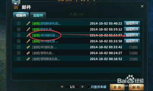 点击邮件菜单,就会看到我们领取到的礼包邮件