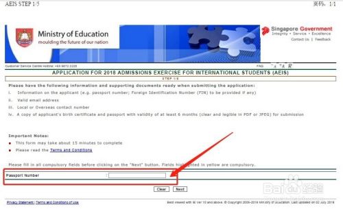 联网登陆新加坡教育部的网站,击点“ADMISSION”进入"International Student"学习的界面