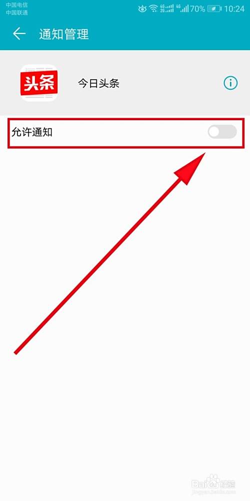 或者在页面最上端找到“允许通知”选项,将它关闭,这样,也可以实现消息推送不再显示在手机顶端的功能。