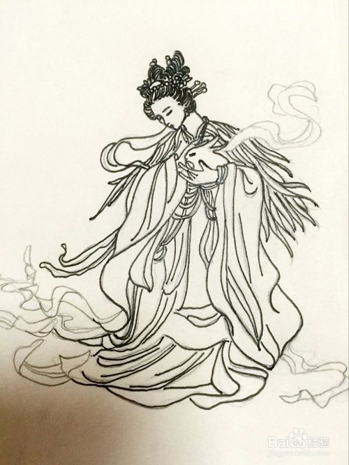 最后将飘带衣带等勾画完成,整个嫦娥就完成了,很简单吧。