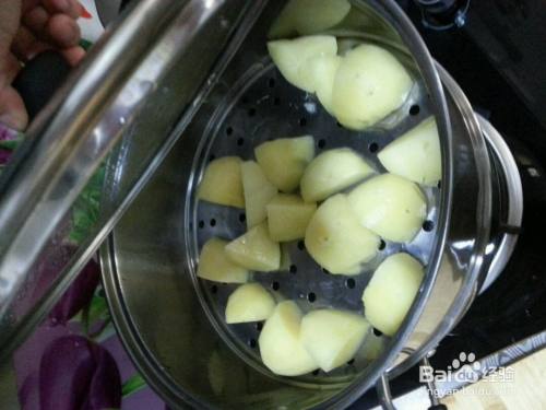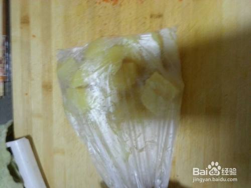 土豆蒸好取出,我直接装到了保鲜袋里,赶成了土豆泥