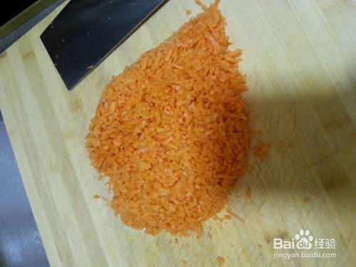 萝卜我用了一根,买大了,应该买中等一点正好,切成丁(我是直接擦成粗丝然后切的,呵呵!)