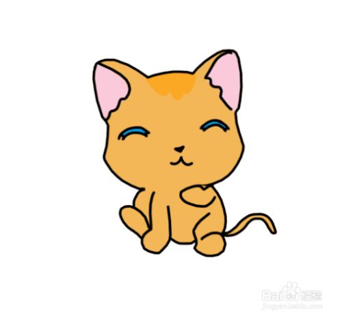 给小猫咪简单涂个颜色。这是一只橘色的猫咪。这样一只可爱的小猫咪就完成了,是不是很简单呢~快拿起画笔画起来吧。