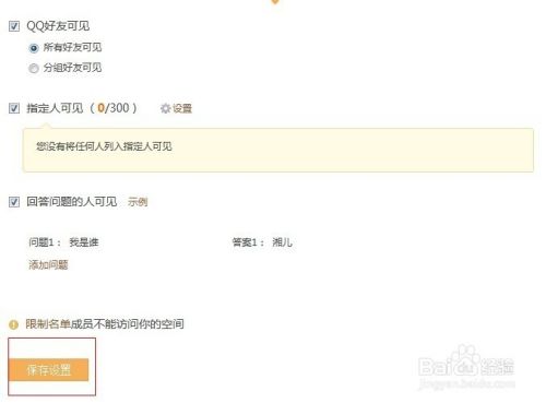 完成需要的设置之后,我们点击左下角的保存设置,就可以啦!这样我们的QQ空间就只有我们想让他看见的人才能看啦!陌生人想要查看就是不可能的啦!