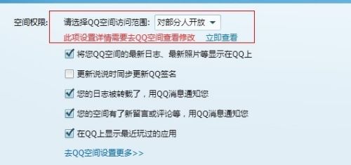 然后我们看到了他出现了一个红色提示,【此项设置详情需要去QQ空间查看修改】然后就自动跳到QQ空间页面了。