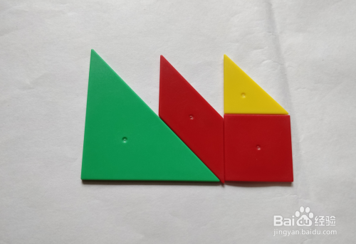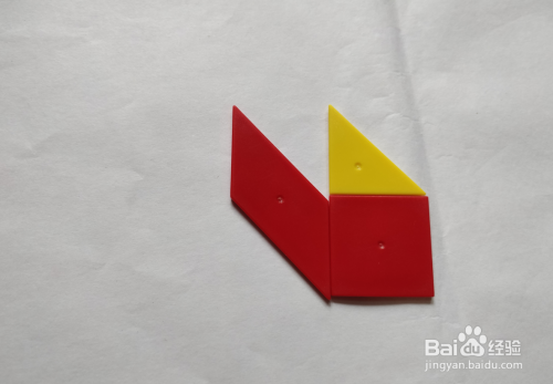 放上上下挨着的黄色小三角形、正方形,左端一齐,如图。