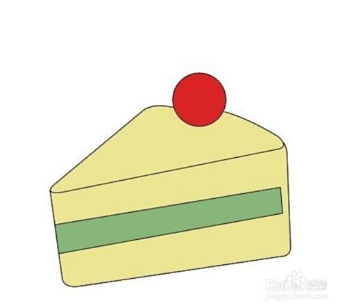 最后给小蛋糕添加颜色,完成小蛋糕简笔画作图