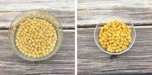干豌豆浸泡34小时,直至完全泡发。灰灰是提前一夜浸泡,放冰箱冷藏泡发。等泡发之后去皮。※如果你买的是脱皮的干豌豆,可以忽略去皮这一步。