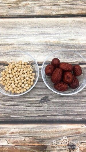 煮豆的时候可以将红枣去皮去核。※红枣蒸一下更好去皮。宝宝月龄小,红枣皮不容易消化,最好是去皮。