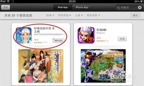 在苹果商店中搜索【轩辕剑】,搜索结果中第一位的就是这款游戏,大宇公司也只把这款最经典的轩辕剑游戏进行了移植。