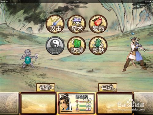 在移动过程中遇到怪物会自动进入战斗界面,可以选择攻击、奇术、物品等选项。