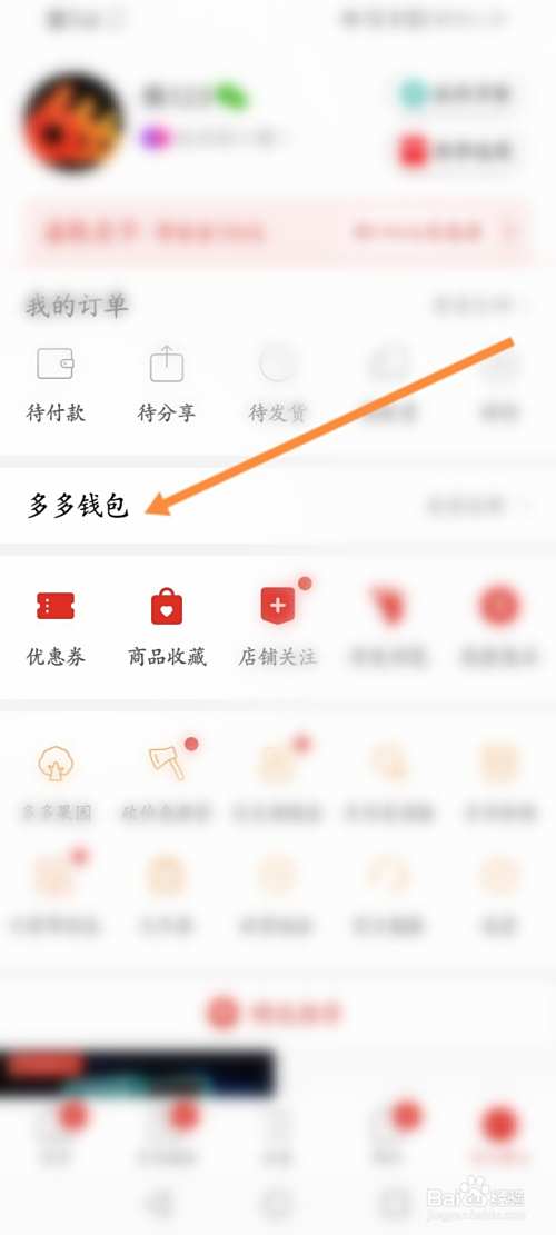 点击多多钱包选项。