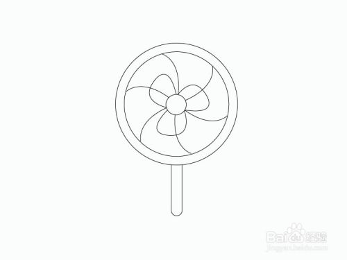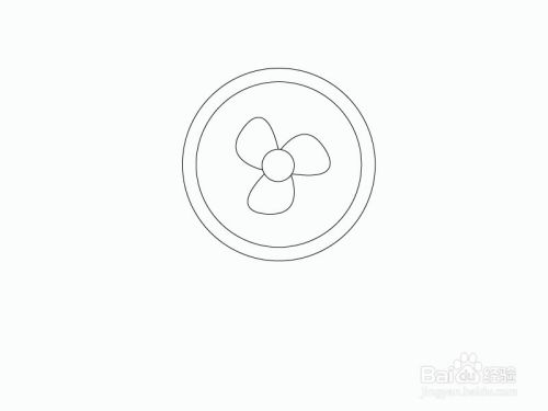 扇叶画好了,接着在中心圆的边上,画出6条线条和中圆形边接在一起。