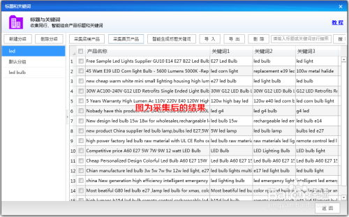 采集后的标题和关键词会保存在自己创建的分组里,如图所示: