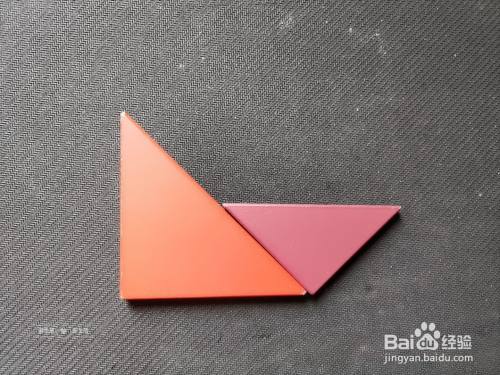 拿出一个深蓝色大三角形放在红色大三角形的上面,如下图所示。